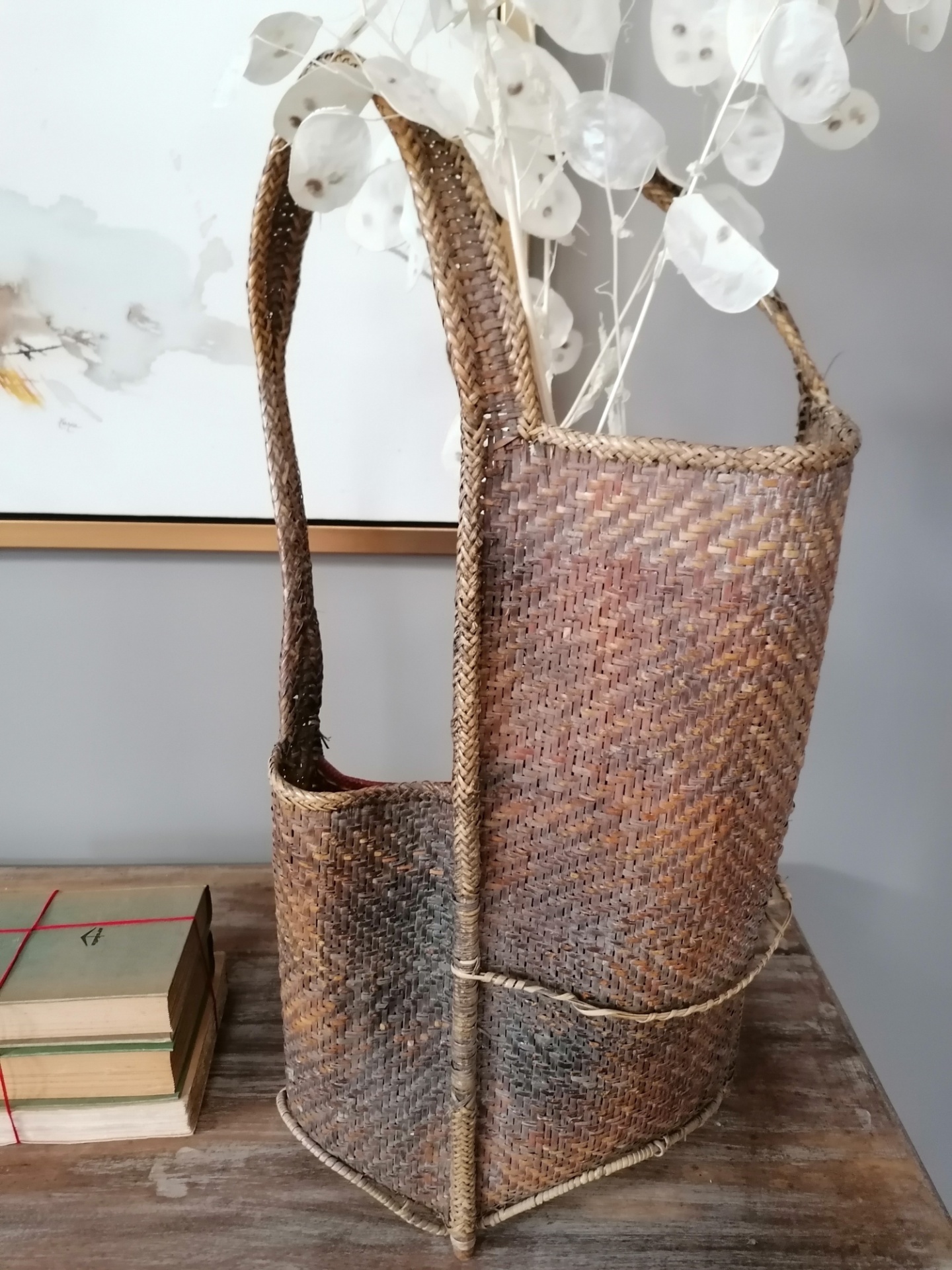 Artigo único que foi recuperado e tratado. Cesto tradicional do Laos, usado pelos camponenses na apanha do chá.